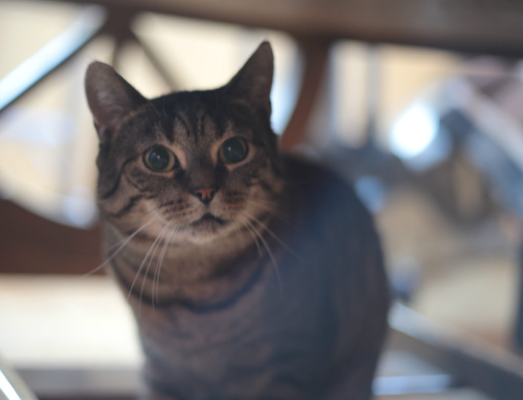 getigerter Kater schaut ganz interesiert