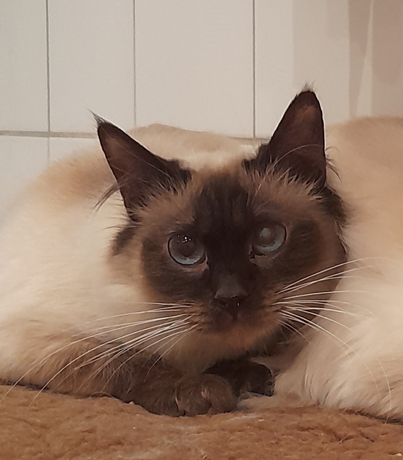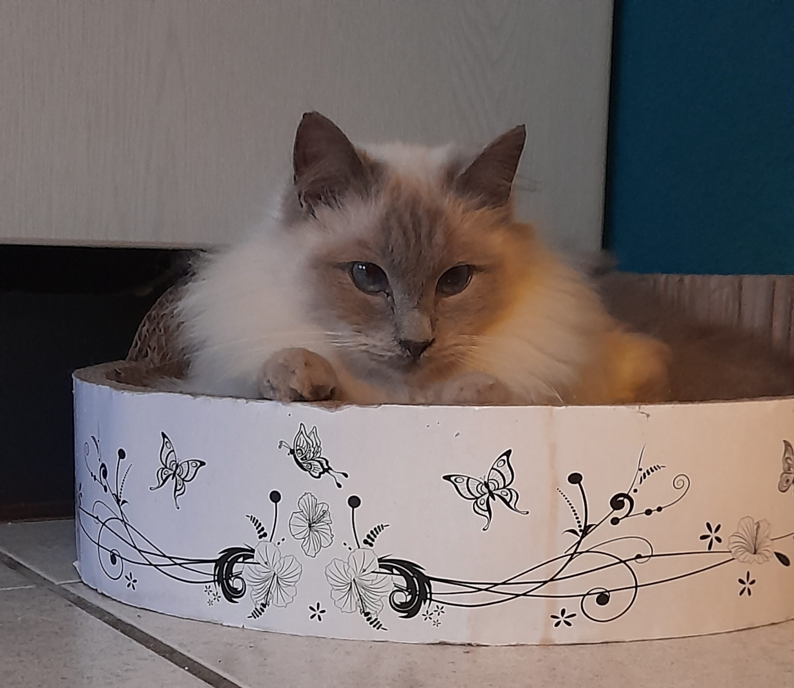 „Norweger-Katze Chloe, geboren 2018, hat ihr Zuhause verloren, weil ihr Besitzer in ein Pflegeheim musste. Durch das Zusammenleben mit dem älteren Herrn ist sie ein absolut ruhiges Umfeld gewohnt. Sie hat Angst vor hektischen Bewegungen und lauten Geräuschen. Sie ist Menschen gegenüber zunächst äußerst zurückhaltend und es scheint, als suche sie sich einen Menschen aus, an den sie sich dann bindet und dem gegenüber sie offen, zutraulich und verschmust ist.